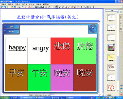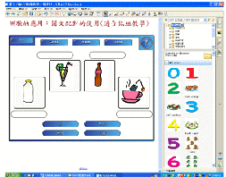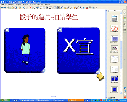 不同的題型做各種變化,而互動式電子白板中的評量題型有配對、分類、選擇、提示…等方法,幾乎所有的特教教材皆能在老師的巧思下,廣泛運用其中的互動遊戲。