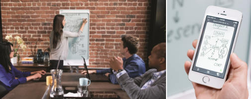 SMART kapp 雲端白板將「擷取、儲存、共享」功能集於一體,會議室全場可隨時清晰的看到 kapp 上使用白板筆的書寫過程,可立即分享內容至行動裝置,不必擔心漏掉重要資訊。