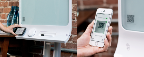 SMART kapp 插入電源即可使用,支援 iOS 及 Android 系統的手機、平板、電腦等行動裝置,透過 QR Code 掃描或 NFC 感應的方式即可與 SMART kapp 快速連接,同步接收 kapp 上書寫的會議筆記。