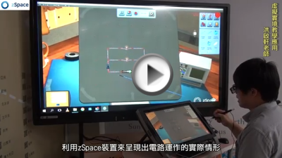台北市仁愛國中 自然與生活科技領域 洪啟軒老師特演示 zSpace 在理科領域中的應用,幫助學生學習電路的基礎知識。