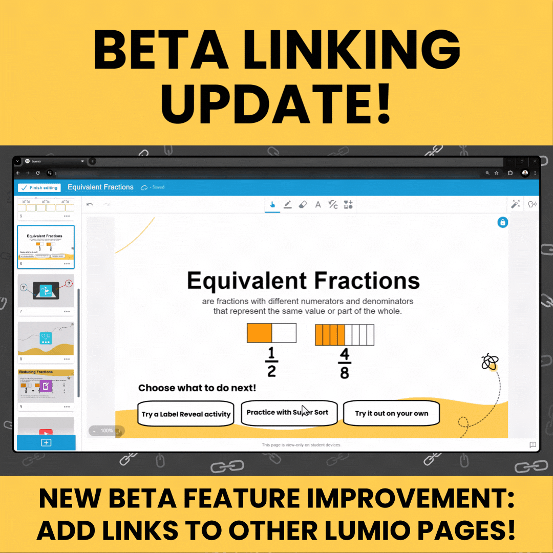 Lumio Beta 推出更強大的頁面超連結功能,讓課程內容串聯更直觀、資源分享更便捷!教師可在文字或圖片上附加超連結,不僅能跳轉至外部網站,還能在課程頁面之間建立連結,解鎖更多創新教學應用。