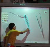 就自然課而言,雖然老師事先用電子白板軟體備好教學內容,但由於課程貼進生活,在課堂討論中,往往能激發孩子相當多的想法,更甚者,孩子們的創意遠遠超出老師既定的教學內容,「即時性」的融入教學流程中,成了老師的一大考驗,此時,引進科技工具便成了教學的考量。 |