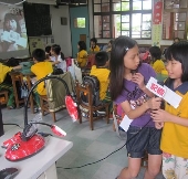 一年前參加 SMART 冬令營,現場的老師分享將 SMARTBoard 妙招融入各領域相關課程增進學習興趣,此舉誘發讓推動閱讀多年的我,思考到若能將閱讀「國語日報」融入 E 化「Lumens 實物提示機 + SMART Response 無線評量系統」媒材,讓枯燥的閱讀隨著將 Lumens 提示機當成鏡頭,學生化身為主播播報每天所閱讀的新聞,讓午餐閱讀時間充滿了新奇有趣,再輔以 SMART Response 無線評量「即時回饋」的學習方式,不只學生的學習動機提高,在他們打開耳朵用心聆聽時,老師的教學熱情與新鮮感也一同回到教室之中。學生與我彷彿像發現閱讀學習的新樂園一般。如同奧維爾.普瑞斯科:「很少孩子會主動喜歡上閱讀,通常都必須有某個人引領他們進入書中奇妙的世界。」 |