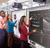 嘉穎科技為了幫助教師突破傳統教學模式,創新打造「SMART 遠距協作教室」,獨特的雙電子白板系統,將帶給教師一個簡單又實用的革命性教學法。本系統搭配 SMART Meeting Pro 協作軟體,只需利用一台電腦即可與多台電子白板連線,最多可串連16台電子白板,更可以整合 SMART Bridgit 遠距視訊教學軟體,同步和任何一地的教室做遠距互動教學,達到學習無國界。 |