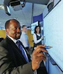 敏捷式開發中心主任 Bola Oshisanwo 表示:“受到 Google、Gartner Group 和微軟實踐經驗的影響,透過對於人們實際合作方式以及互動環境有利於做出動態和積極決策的研究,我們認識到對於某種形式臨場感的需要,並評估了能夠滿足我們部分遠景的大量技術和軟體。我們的開發人員經常圍繞著電子白板進行團隊工作;研究發現,他們希望看到彼此之間的互動、同事們在電子白板上所寫的內容,而不是同事的臉。因此,我們的解決方案必須支援同時連接分散在多個地點的團隊的工作模式。”