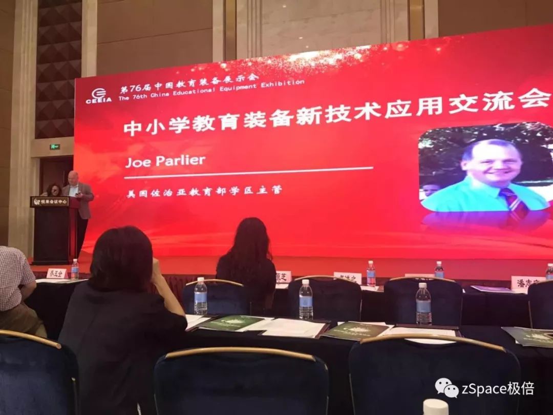 來自美國佐治亞州的學區主管Joe Parlier還受邀參加中小學教育裝備新技術應用交流,並在活動中進行開場發言,為觀眾們介紹了AI、VR、AR等尖端技術在美國教育的融合應用情況,講述了技術對於美國STEM教育的影響,分享了目前最新的教育研究成果。