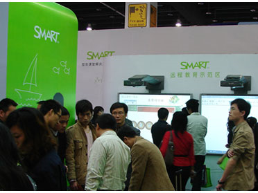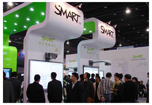 SMART互動式電子白板和SMART實物投影機相互使用這一生動、有趣和直觀的課堂解決方案頗受參觀者們的青睞。該方案不僅可以清晰地觀測到被觀測物件,增強教學互動性,還有助於老師們提高其課程的趣味性,讓學生們更加興趣盎然。而SMART互動式電子白板和SMART Podium互動式數位講臺的完美搭配,也博得了不少參觀者的好評。小小的數位講臺與互動式電子白板可以同步呈現視訊、注釋等所有演示內容,即使是在階梯教室這樣廣闊的場合中,也能讓用戶輕鬆面對,從容自信地完成教學和演示。