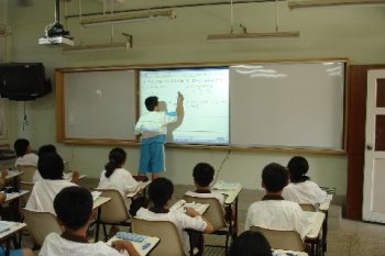 校方指出,電子白板將電腦、單槍投影機、感應式白板結合,跳脫以往授課時因操作不同介面而須中斷的教學模式,老師與學生互動更緊密,老師們都很喜歡使用。