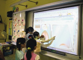 陳惠邦說,電子白板在國外已發展20年,國內剛起步,電子白板強調互動,小朋友有更多表達機會,可以增強學生的專注力、學習興趣與動機。它還是綠色產品,也能整合DVD、網路等其他資源,用途廣泛。