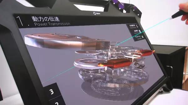 展覽為人們提供了一種不同的體驗方式。打開這台24英寸的3D顯示幕,帶上輕質的追蹤眼鏡,握住虛擬互動筆,然後你就可以一個個地撿起、檢查、放大、移動那些精密的配件,組裝拆分整個系統。不能親自操作的參觀者們,還可以通過大螢幕上的增強現實技術zView觀看整個過程。