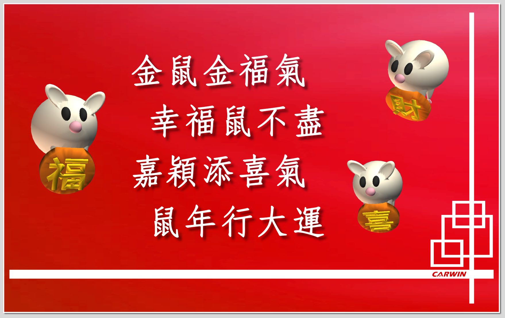 嘉穎科技祝大家在金鼠年裡有鼠不盡的快樂、鼠不完的好運、鼠不停的收穫,一起開開心心迎鼠年!