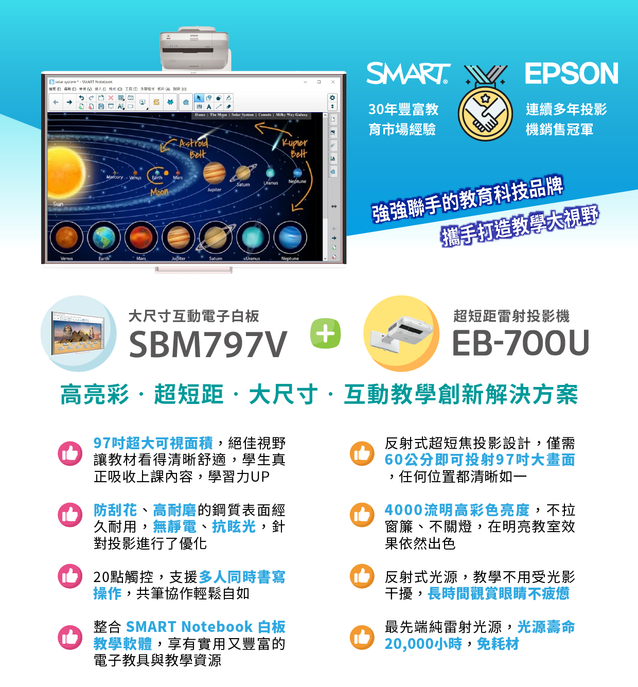 高亮彩 超短距 大尺寸 互動教學創新解決方案