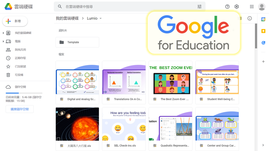Lumio與Google教育平台、Microsoft Teams教學平台無縫串連,只要登入一次,就可以使用各平台之下的服務。以Google教育平台的整合為例,教師可以從Google雲端硬碟直接開啟Lumio教材進行授課,課後學生直接從Google Classrooms就能開啟Lumio作業練習,有效簡化教學工作流程,方便又實用。