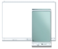 可選配 42 吋或 84 吋的雲端白板,其角色在替代傳統黑板,使用一般白板筆即可進行書寫,亦可同步書寫畫面至其他參與者的載具(智慧型手機或平板電腦),透過行動載具即可儲存紀錄,多頁的板書內容可存取成一個 PDF 檔案,讓學生專注於現場的互動討論,而不是忙於低頭寫筆記,有效提高學習效率。
