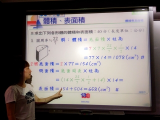 任教於屏東補教機構的數學教師歐曉婷老師同樣是 SMART Board 電子白板的愛用者,歐老師表示:一般人對數學老師刻板印象就是數學老師徒手一畫,就能畫出一條直線或圓,雖然數學老師在課堂最常做的就是畫圖、畫幾何圖形,但每次上課一直重複的畫著同樣的圖形其實很浪費時間。早年受限於硬體設備的不足,若想減少畫圖的時間,就必須事先後製,也因此我的教具越來越多,上一堂課像聖誕老公公般,呈現了非常多的教具。教具的好處是我終於能把幾何圖形完整呈現給學生,便於他們做聯想,缺點是坐在後面的學生就會看不清楚,可見教具仍有其限制。