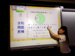 直到我接觸了 SMART Board 電子白板後才發現「哇!原來教學可以這麼無極限!」它大大的減少了我做教具的時間,以前要畫一個圓形,我必須使用圓規,張開半徑、定好圓心、畫圓,圖形很標準沒錯,學生的心思也飛走了。但使用 SMART Board 電子白板內建的互動教學軟體 SMART Notebook,只要一個指令,圓形馬上畫好,放大縮小也隨我意,甚至改變顏色也沒有問題!這都只有短短的幾秒就可以完成,我就是一位魔術師,magie 在我的手上。減少作圖時間,增加題目講解時間,受惠的真的只有學生嗎?我相信我也樂在其中,SMART Board 真有你的!