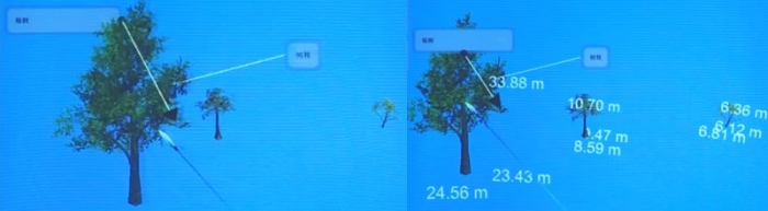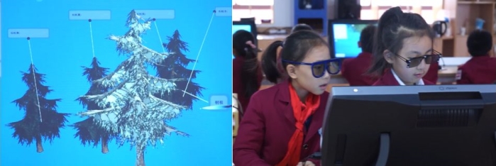 課堂中利用虛擬實境技術讓學生身臨其境的觀察楊樹、榕樹、梧桐樹、楓樹、松樹等樹木的特點,並且應用軟體中尺寸對比或直尺測量等工具,突破實際觀測樹木的困難。學生藉由動手實踐操作,在課堂中能輕鬆完成學習任務,有效提高了學生的學習效率。