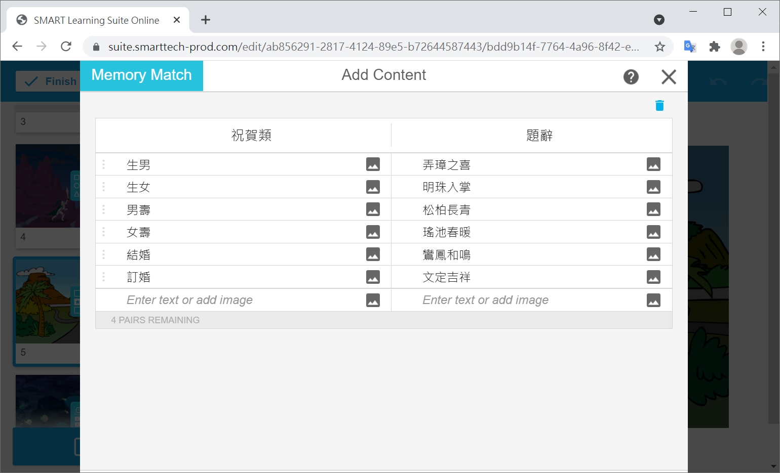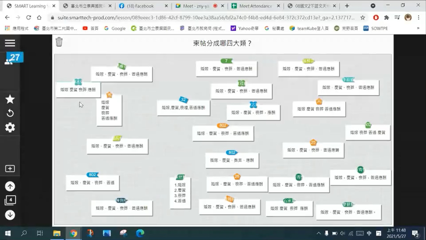 學生輸入回答的內容,以便利貼的方式呈現在老師頁面 配對活動,學生可以反覆練習