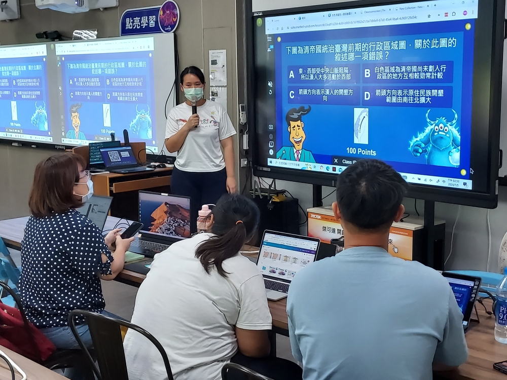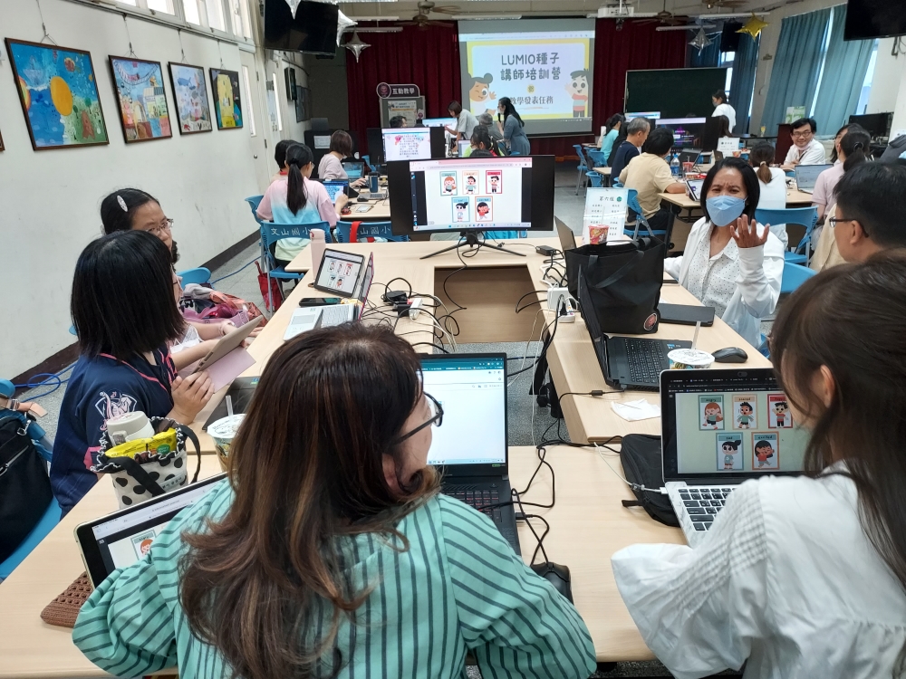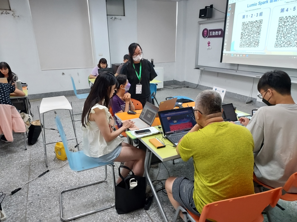 培訓營的現場氣氛熱烈,吸引了來自各地充滿教學熱忱的教師參與。在培訓過程中,教師們經歷了一系列的學習和實踐環節。他們透過小組討論和實際操作,學習如何使用 Lumio 遊戲模板及數位教具進行教學設計。不同領域的教師組合在一起,促進了不同思維的交流與碰撞,激發創新的靈感,創作出許多精彩的互動教材。此外,在結訓前的實際演示中,每位教師都現場發表當天的學習成果,進行了 Lumio 教學經驗分享與深度交流。