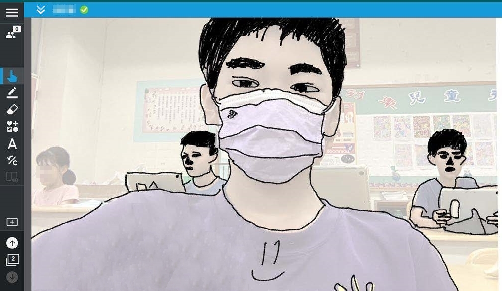 課堂的最後階段,學生透過 Lumio 展示自己的創作,並參與同儕回饋活動。透過彼此的鼓勵與建議,他們不僅學會欣賞不同風格的作品,也更了解如何表達自己的創作想法。一名學生開心地分享:「我的自畫像一開始很普通,但現在加上數位繪圖的效果,作品完全變得不一樣!」