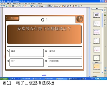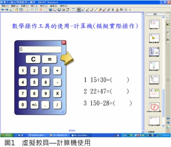 電子白板可以多倍率的放大虛擬教具(如圖1)和內容,省去老師製作大型海報的時間與精力,便於呈現欲教導的內容,當老師排除與教學無關的視覺干擾後,就能幫助學生將注意力聚焦。