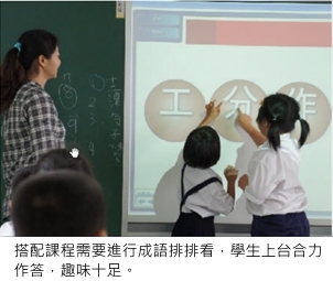 教師運用 SMART Board 教學編輯軟體,設計適合個別化的教學內容,能符合個別班級進度及程度的互動性活動,進行總結性評量及補救教學,別於一般紙筆評量的枯燥及緊張氣氛。