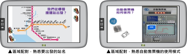 接近學期末時,因為教學主題來到了「高雄行動通」,我們將帶學生進行戶外教學,實際體驗搭乘高雄捷運的方法,所以我們又利用 SMART Table 讓學生熟練搭乘捷運的方法及流程。以下是幾個教材頁面的示例。