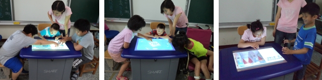 「哇!這是什麼呀?」「這是電腦對不對?」第一次看到 SMART Table,小朋友們無不驚呼連連,並在桌子旁恣意遊走,對這張「神桌」充滿了好奇與興趣,看來孩子們與「神桌」的第一類接觸還挺正向的喔!