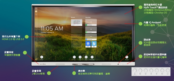 SMART Board MX 系列互動式觸控顯示器,是一款專為教學與學習風格而設計的大型觸控顯示器,擁有互動教學所具備的所有基本功能,包含:電子白板功能、網頁瀏覽器、無線螢幕分享,更提供享譽教育界的 SMART Notebook 學習套裝軟體,讓每一堂課都充滿了探索的樂趣。