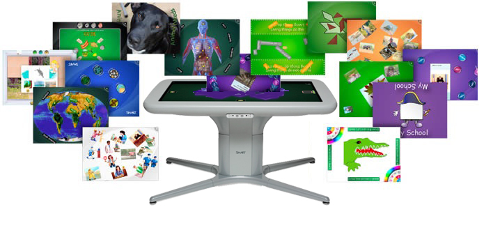 SMART Table 442i 多點觸控智慧平台透過一個互動式桌面讓學生分成小組展開合作,